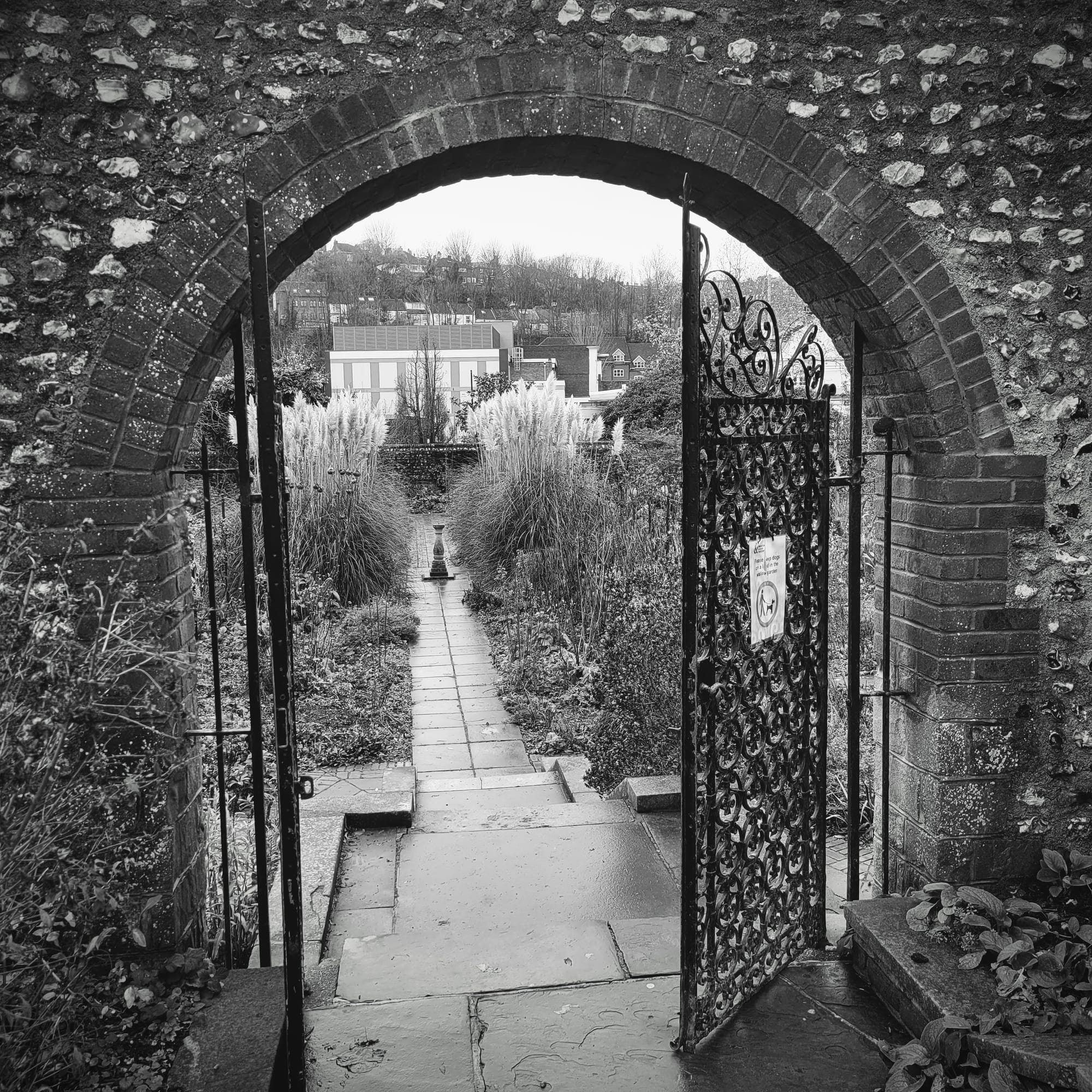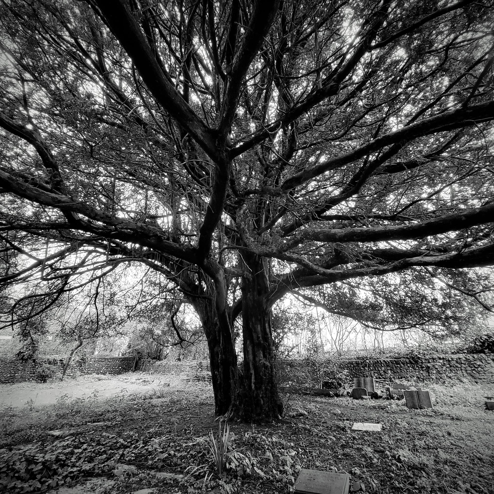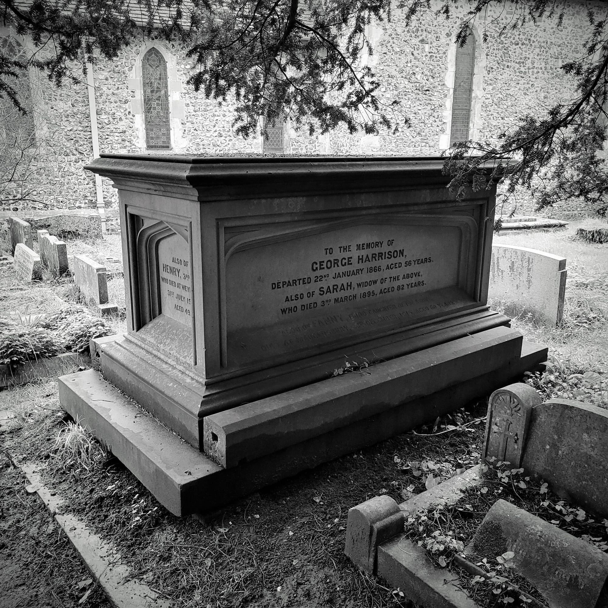 We reached the pet cemetery via Preston Park. There's an old elm tree just outside, one once of two but now one alone. The other has been cast and made into a sculpture. The tree book calls it the "Preston Twin". There were rats all over the cemetery, which made us jump and then laugh at jumping. It seems the pets were mostly dogs, memorialised by the owners of the manor house just beyond, and just beside that St Peter's church, now unused but kept in good condition by the Churches Conservation Trust, and in which we looked at the wall paintings and the tomb for the altar and the piscina and the small organ with grubby, wobbly keys like panels of a rope bridge. And it was cold inside but very dry and outside was warmer than inside, so we took off coats despite the winter weather and tramped through the graveyard. We looked for the grave of James Douglas but couldn't find it, but found George Harrison instead and then we left and were soon back amongst the strange, flat little park of Preston, now Brighton, and then back on the train.